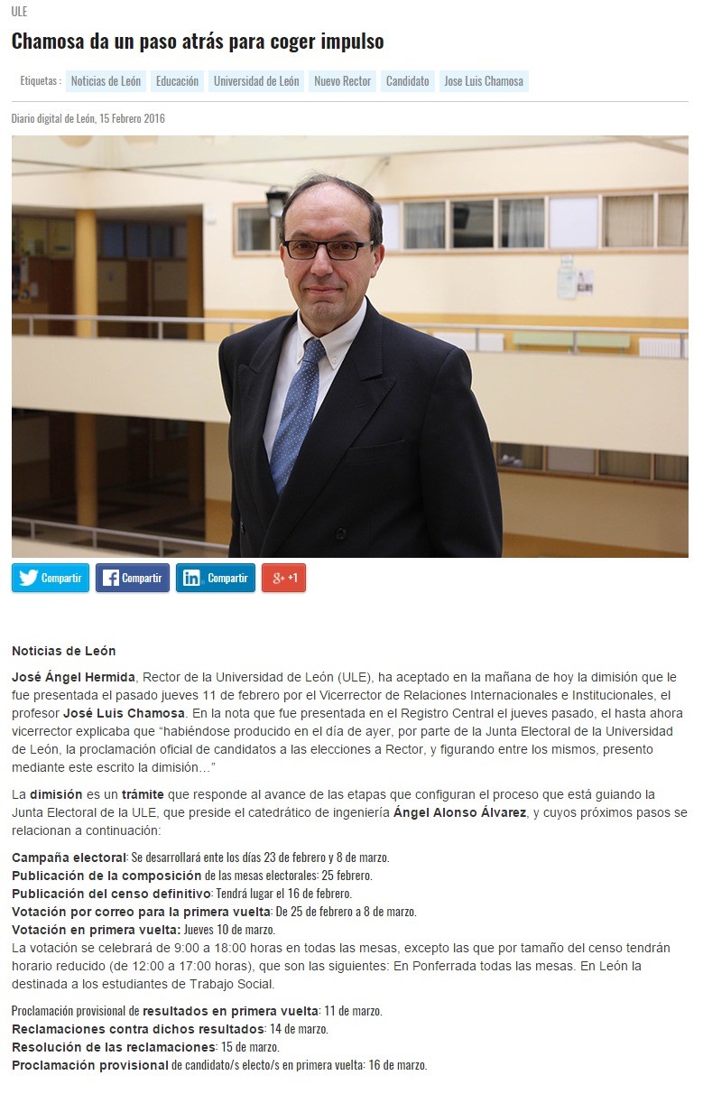 Chamosa plantea una campaña electoral al rectorado de la ULE desde la veracidad y la transparencia y con un mensaje unico En Prensa 03/03/2016