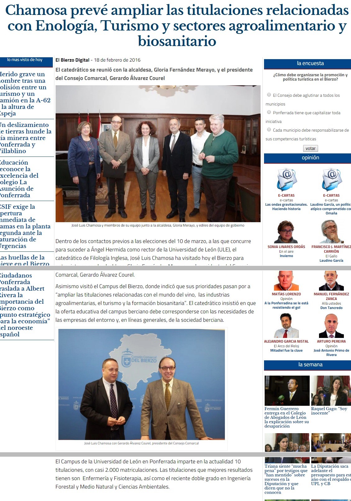 Chamosa plantea una campaña electoral al rectorado de la ULE desde la veracidad y la transparencia y con un mensaje unico En Prensa 03/03/2016