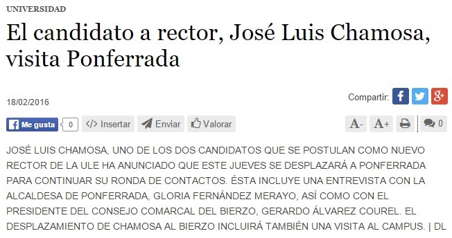 - Envío de Información: José Luis Chamosa empleará los datos personales que nos proporcione con la finalidad de responder a las solicitudes de información que nos envíe y de informar sobre la candidatura a Rector de la Universidad de León.